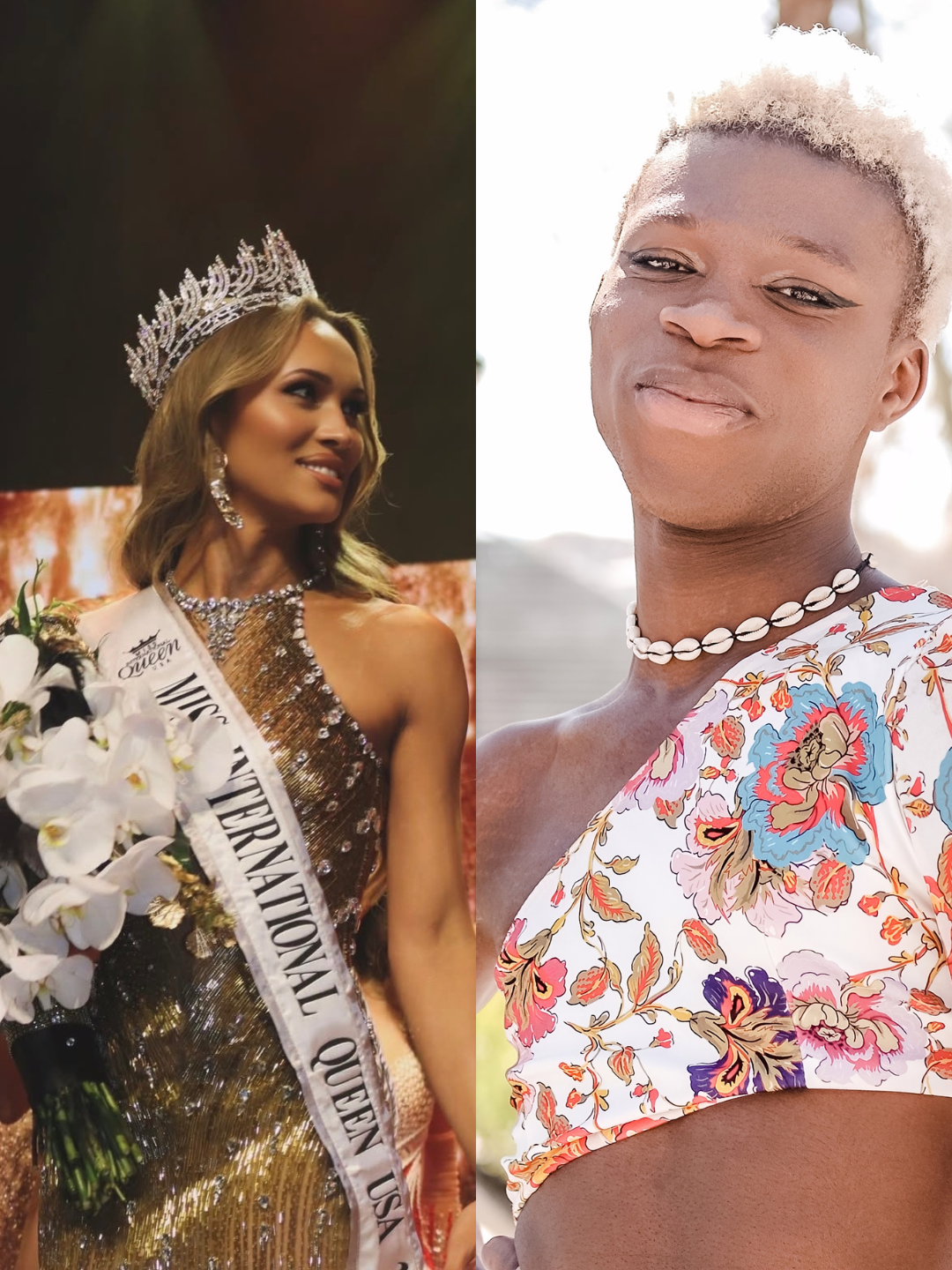 A historic win at Miss International Queen, and celebrating Trans Day of Visibility in 2026. (Instagram @missinternationalqueenusa/Shutterstock Creative; Daniel Megias)